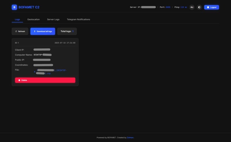 BOFAMET è progettato per estrarre i dati del browser (come password salvate, cookie e informazioni di compilazione automatica), acquisire screenshot, rubare dati delle sessioni di messaggistica (ad esempio Telegram e Discord), sottrarre documenti personali e raccogliere file di portafogli di criptovalute. Inoltre, raccoglie informazioni dettagliate sul sistema, sulla rete e sull'utente.